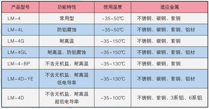LM-4系列冰河冷媒具有低毒,不易燃,比熱大,安全穩(wěn)定,載冷能力強(qiáng)等優(yōu)點(diǎn)。對(duì)碳鋼、不銹鋼、紫銅等金屬防銹性能優(yōu)良。在不同濃度條件下,可以在很寬的溫度范圍內(nèi),廣泛應(yīng)用于各種制冷系統(tǒng)。使用時(shí),根據(jù)具體工藝溫度要求單獨(dú)使用或用水稀釋成適當(dāng)濃度后應(yīng)用。如與醇類(lèi)載冷劑混合使用,應(yīng)加入適量的冰河冷媒增效劑。其中: