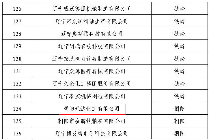 咱朝陽市的光達(dá)化工榜上有名!
