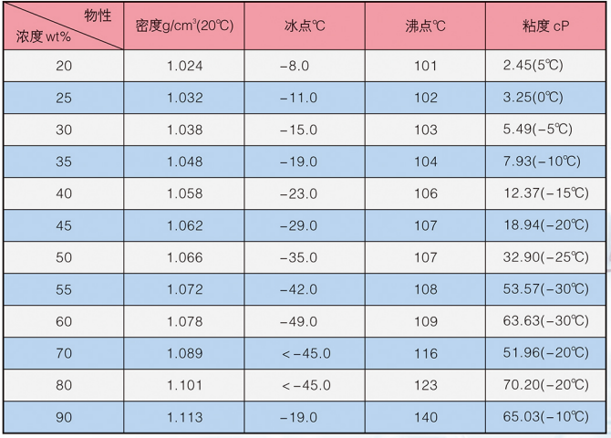 LM-4系列冰河冷媒由二元醇改性構(gòu)成,主要添加劑包括防腐蝕劑,防霉劑,增溶劑,水穩(wěn)劑等。外觀為淺色液體。安全低毒、無(wú)異味、不易燃、不易揮發(fā)。20℃時(shí),原液密度為1.105~1.125g/cm',粘度為13.92mPa·s(cP),比熱為0.619cal/g℃,熱導(dǎo)率為0.26W/mK。沸點(diǎn)高于140℃,閃點(diǎn)高于120℃。
