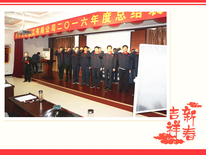 最后公司董事長白松泉做大會總結(jié),回顧公司2016年的工作,給予了充分的肯定,解讀公司各項(xiàng)制度,激勵員工積發(fā)揮自己的特長,為公司,為人類文明貢獻(xiàn)力量!2016年是公司發(fā)展壯大的一年,公司新廠區(qū)正在建設(shè)中,各項(xiàng)工作取得了圓滿的成功,2017年的計(jì)劃和藍(lán)圖已經(jīng)描繪,朝陽光達(dá)化工有限公司上下將精誠團(tuán)結(jié),齊心協(xié)力,銳意進(jìn)取,為開創(chuàng)公司改革發(fā)展新局面而努力奮斗。