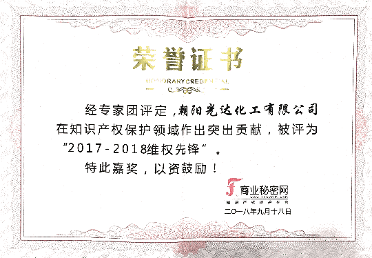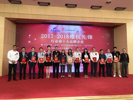 我公司被評為2017-2018維權(quán)先鋒