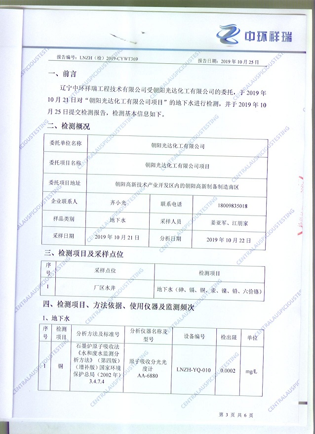 朝陽光達(dá)化工有限公司土壤檢測報(bào)告公示