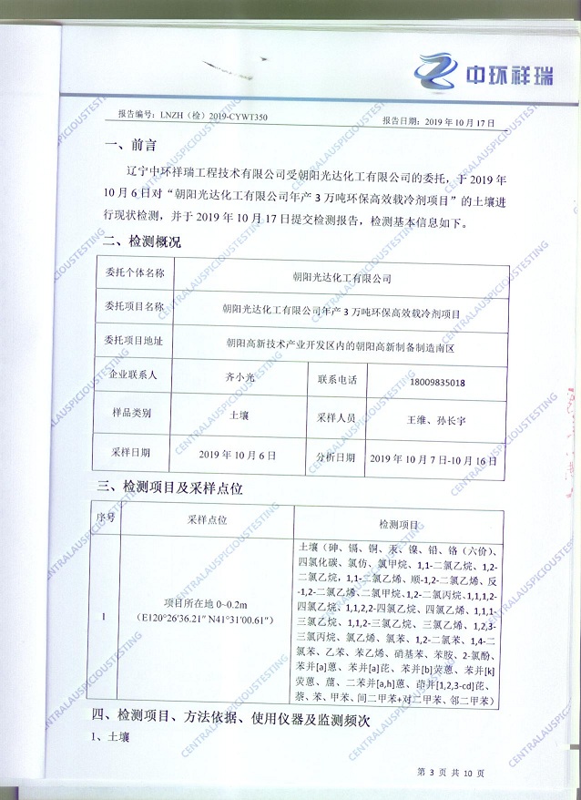 朝陽光達(dá)化工有限公司土壤檢測報告公示