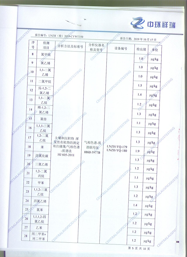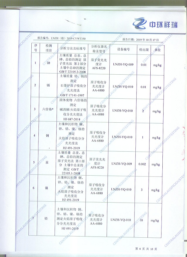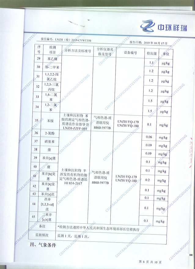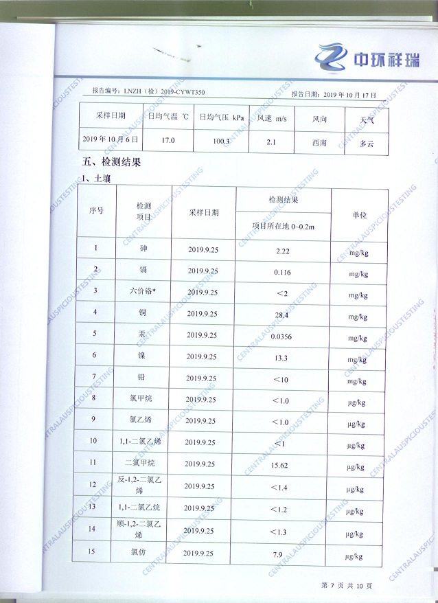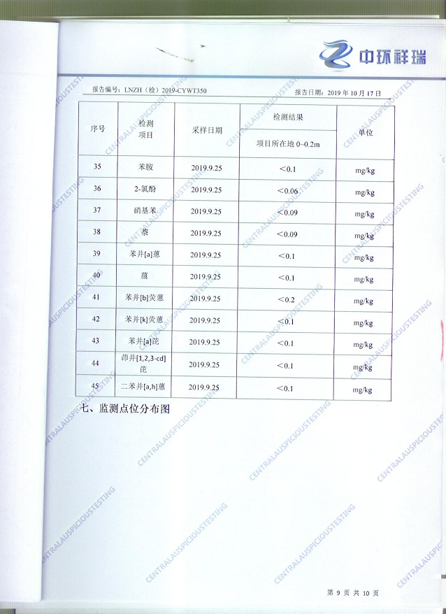 朝陽光達(dá)化工有限公司西廠區(qū)土壤檢測報告公示