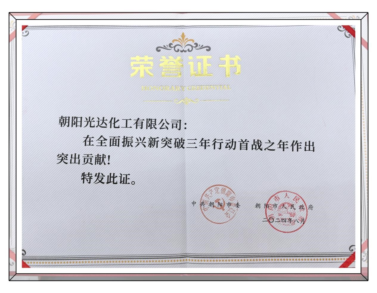 此次表彰不僅是對光達(dá)化工過去成績的認(rèn)可,更是對其未來發(fā)展的一種期待。站在新的起點(diǎn)上,光達(dá)化工將以此次表彰為契機(jī),繼續(xù)發(fā)揚(yáng)敢闖敢干的精神,堅(jiān)持高質(zhì)量發(fā)展道路,為朝陽市乃至全國的新型工業(yè)化建設(shè)做出更大貢獻(xiàn)。